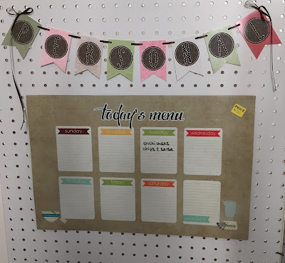 Then it was time to put my adorable banners on the pegboard (just with tape).